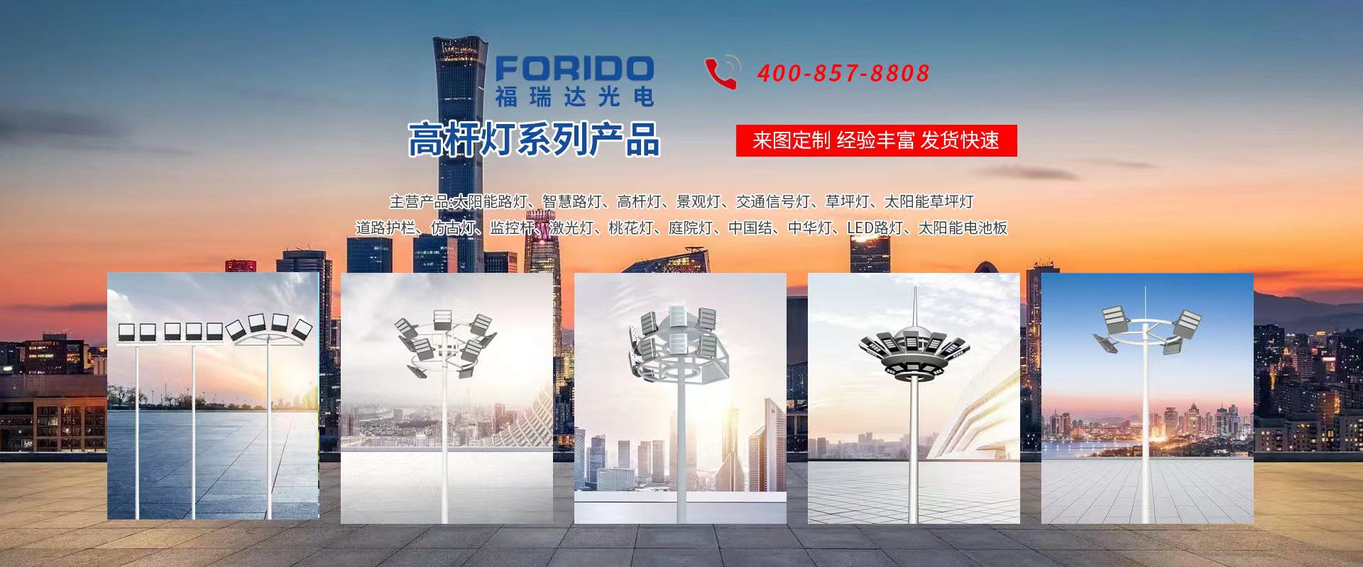 揚(yáng)州福瑞達(dá)光電科技有限公司位于淮左名都?xì)v史文化名城、中國(guó)路燈制造基地?fù)P州市北郊菱塘工業(yè)園,公司占地面積76000平方米,注冊(cè)資金10518萬(wàn)元,擁有高級(jí)技術(shù)嫻熟的員工280多人,擁有大型折彎?rùn)C(jī)、激光切割、數(shù)控注塑機(jī)、壓鑄機(jī)、自動(dòng)埋弧焊、氣焊、彩色粉末靜電噴塑等大型自動(dòng)化設(shè)備,我公司是一家集設(shè)計(jì)、研發(fā)、生產(chǎn)、銷售、施工安裝服務(wù)為一體的戶外交通照明產(chǎn)品制造商,主要生產(chǎn)智慧路燈、太陽(yáng)能路燈、LED路燈、高桿燈、景觀燈、交通信號(hào)燈、交通標(biāo)志牌、通信鐵塔、路跨鋼結(jié)構(gòu)、公交站臺(tái)、太陽(yáng)能光伏組件、景點(diǎn)亮化、樓宇亮化工程的設(shè)計(jì)施工等。公司秉承開(kāi)拓創(chuàng)新、銳意進(jìn)取、精誠(chéng)服務(wù)的企業(yè)精神,堅(jiān)持以“誠(chéng)信為本、技術(shù)為先、服務(wù)是金”的合作理念,我們憑借先進(jìn)的制造工藝、優(yōu)質(zhì)的產(chǎn)品質(zhì)量、合理的市場(chǎng)價(jià)格和完善的售后服務(wù)贏得了廣闊的市場(chǎng)和客戶的信賴?! ∥夜疽淹ㄟ^(guò)ISO9001質(zhì)量體系認(rèn)證、ISO14001環(huán)境管理體認(rèn)證,CQC產(chǎn)品認(rèn)證,中國(guó)節(jié)能產(chǎn)品認(rèn)證,通過(guò)“CCC”強(qiáng)制性產(chǎn)品認(rèn)證,具有市政總承包,照明,交安,設(shè)計(jì)等資質(zhì)···